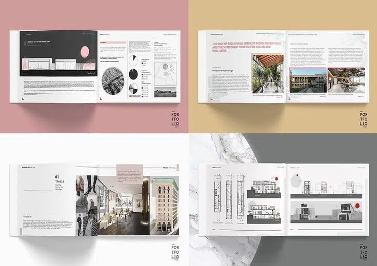 5. فرمت ارائه: برای ارائه پورتفولیو بهتر است هم فرمت پی دی اف از آن داشته باشید و هم نسخه چاپی که معمولا در ابعاد A3 یا A4 چاپ میشود و سایز آن بسته به میزان جزئیات مشخص میشود.