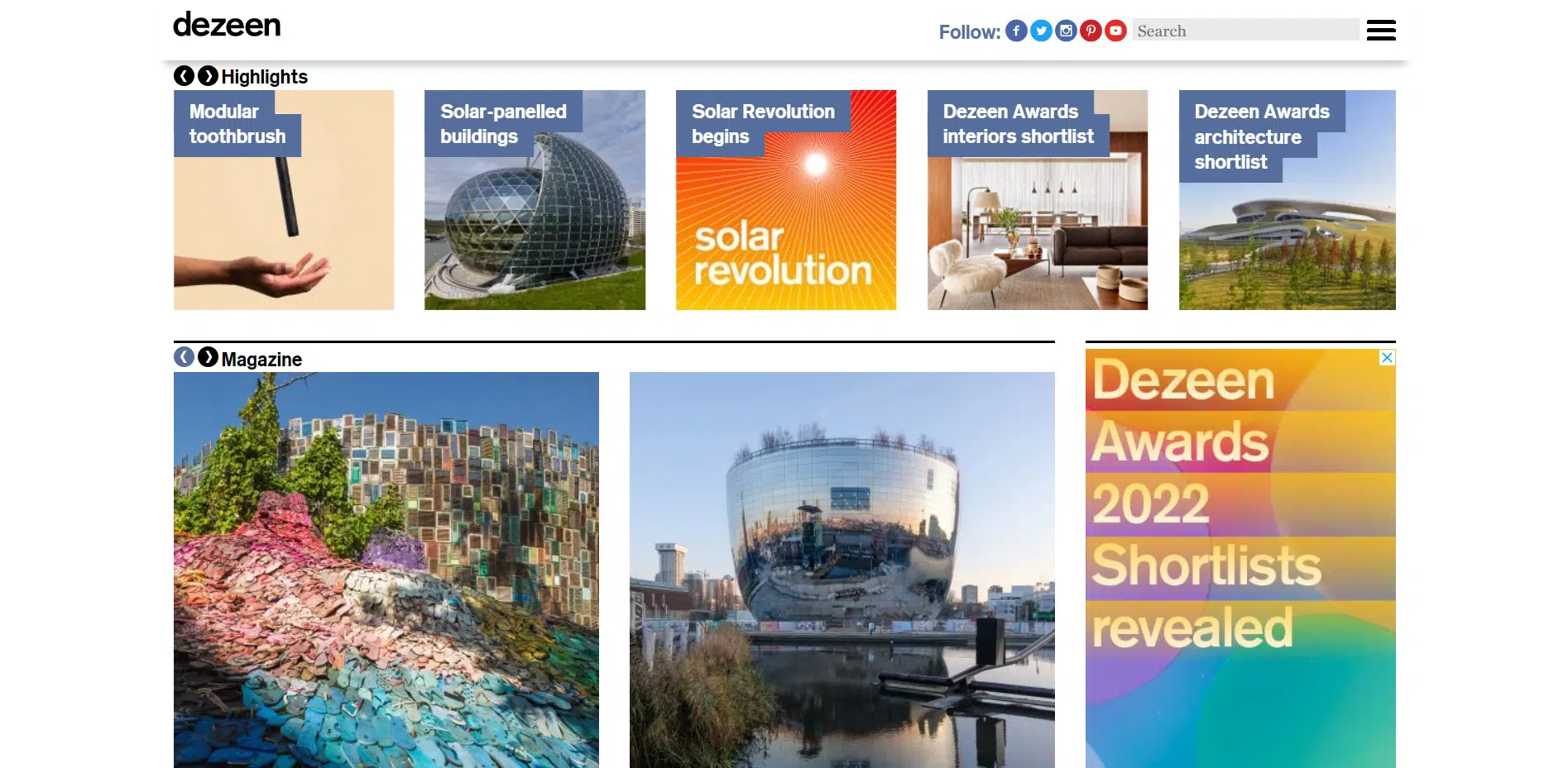 این سایت با 2.56 میلیون بازدید کننده در ماه مرجع بین المللی طراحی است که شامل کارهای معماران و طراحان برتر است و از سایت های برتر معماری میباشد. در این سایت می توانید پروژه های سراسر دنیا را با جزئیات مربوط به طراحی و ساخت آن مشاهده کنید.