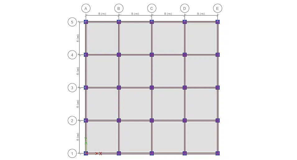 - ترسیم خطوط عمودی و افقی آکس از روی محل قرارگیری ستون ها