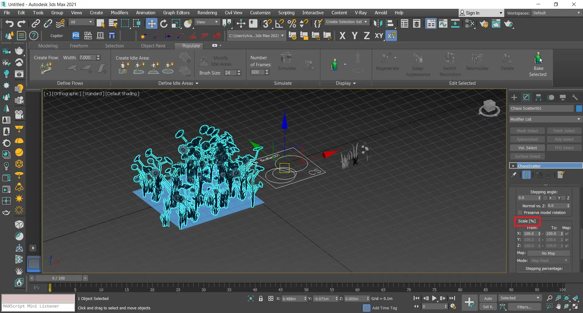 پخش گیاه با ابزار chaosscatter در ویری 6