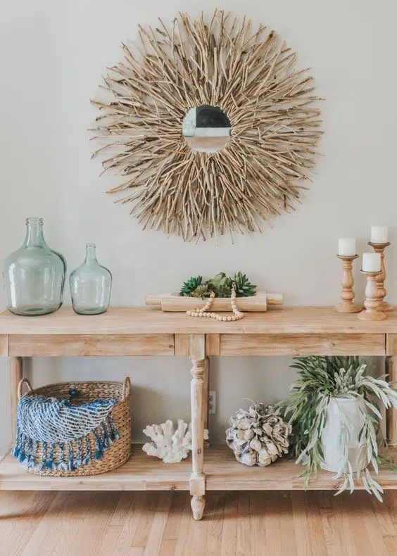 عناصر طبیعی که در ساحل وجود دارند بهترین گزینه برای استفاده تزئینی است. اما باید دقت داشته باشید که در استفاده از آن ها زیاده روی نکنید. حتی میتوانید از وسایلی که در فضای ساحلی استفاده میشود استفاده کنید. به طور مثال میتوانید از توری های ماهیگیری یا طناب های کنفی برای بستن پرده ها استفاده کنید.