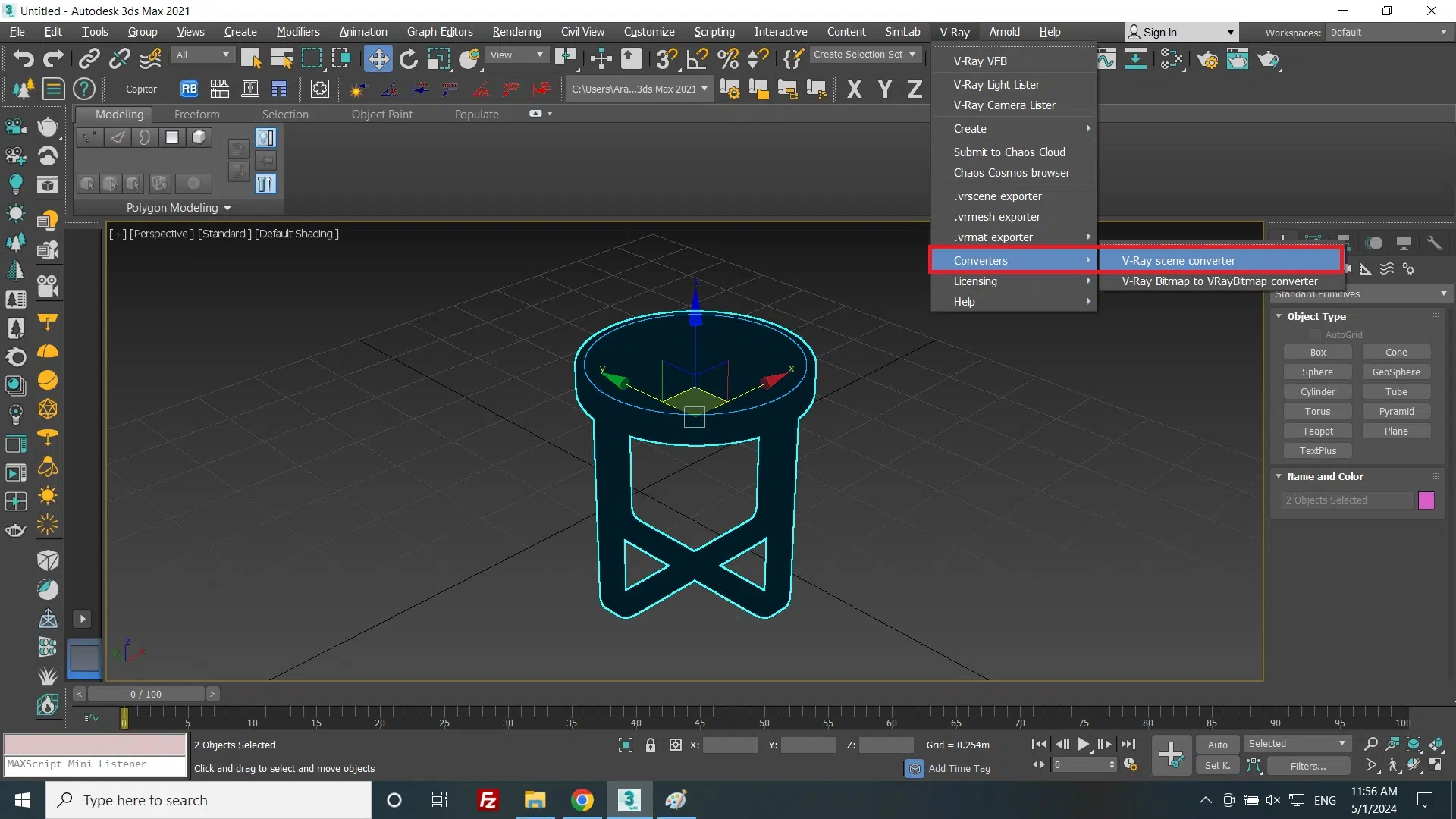 سپس در سربرگ converters گزینه vray scene converter را انتخاب کنید.