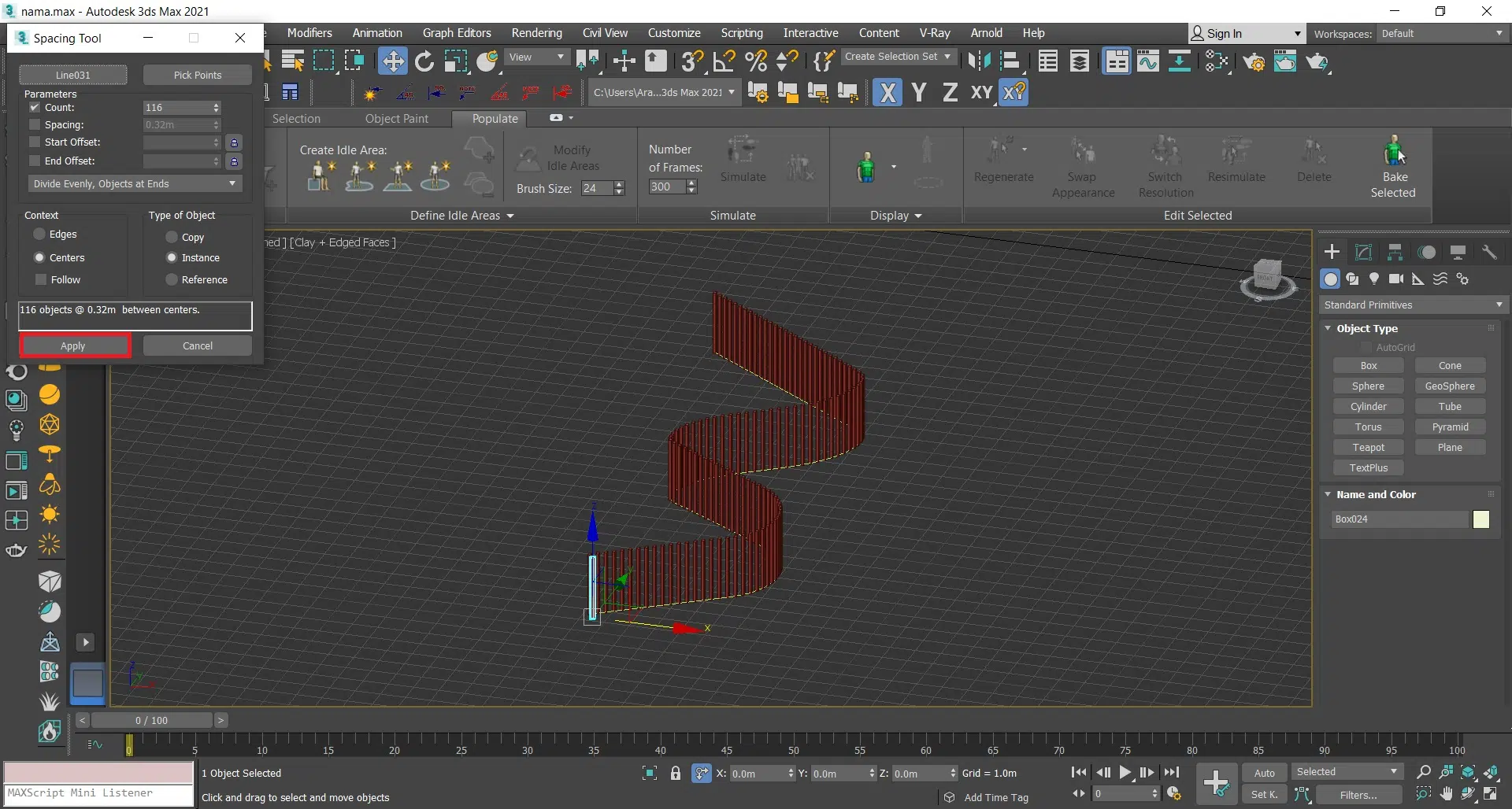 کپی کردن آبجکت در یک مسیر در تری دی مکس