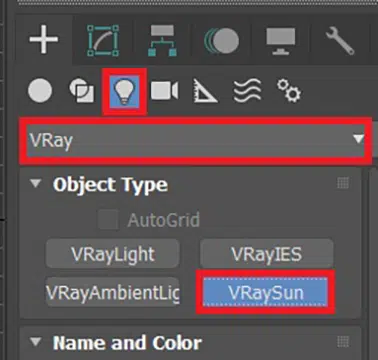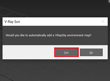 برای نورپردازی روز در تری دی مکس، ابتدا در سربرگ light و زیرمجموعه vray یک vraysun انتخاب میکنیم و با زاویه 90 درجه نسبت به دوربین آن را ترسیم میکنیم و پنجره باز شده مربوط به vraysky را ok میکنیم.