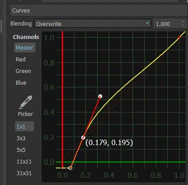 همچنین میتوانیم curve را انتخاب کنیم و نمودار آن را تغییر دهیم تا سایه و نور کار را تنظیم کنیم.