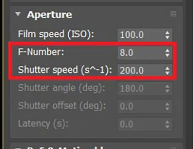 F-number در سربرگ aperture برای تنظیم نور به ما کمک میکند و هرچه عدد آن بیشتر باشد نور صحنه ما کمتر میشود و بالعکس. shutter speed نیز هرچه مقدارش بالاتر باشد نور صحنه کمتر میشود.