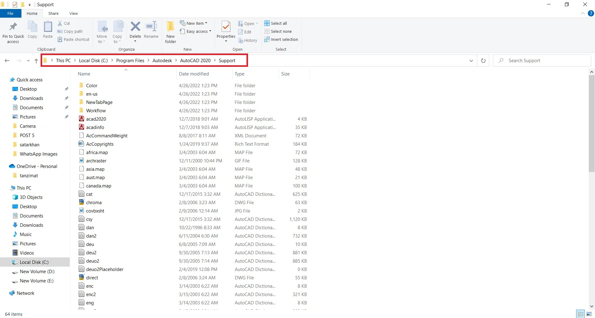 C:\Program Files\Autodesk\AutoCAD 2020\Support