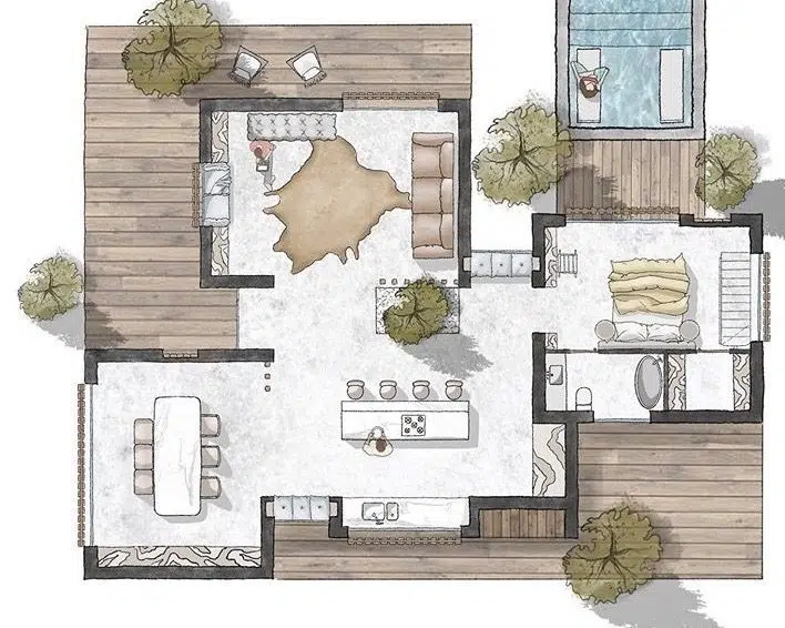 - چیدمان فضا: نشان دادن چیدمان فضا و ابعاد مبلمان درک بهتری از فضا را به کارفرما میدهد. همچنین شما به عنوان یک معمار باید فضا را طوری چیدمان کنید که بهترین بهری وری از فضا را داشته باشیم.