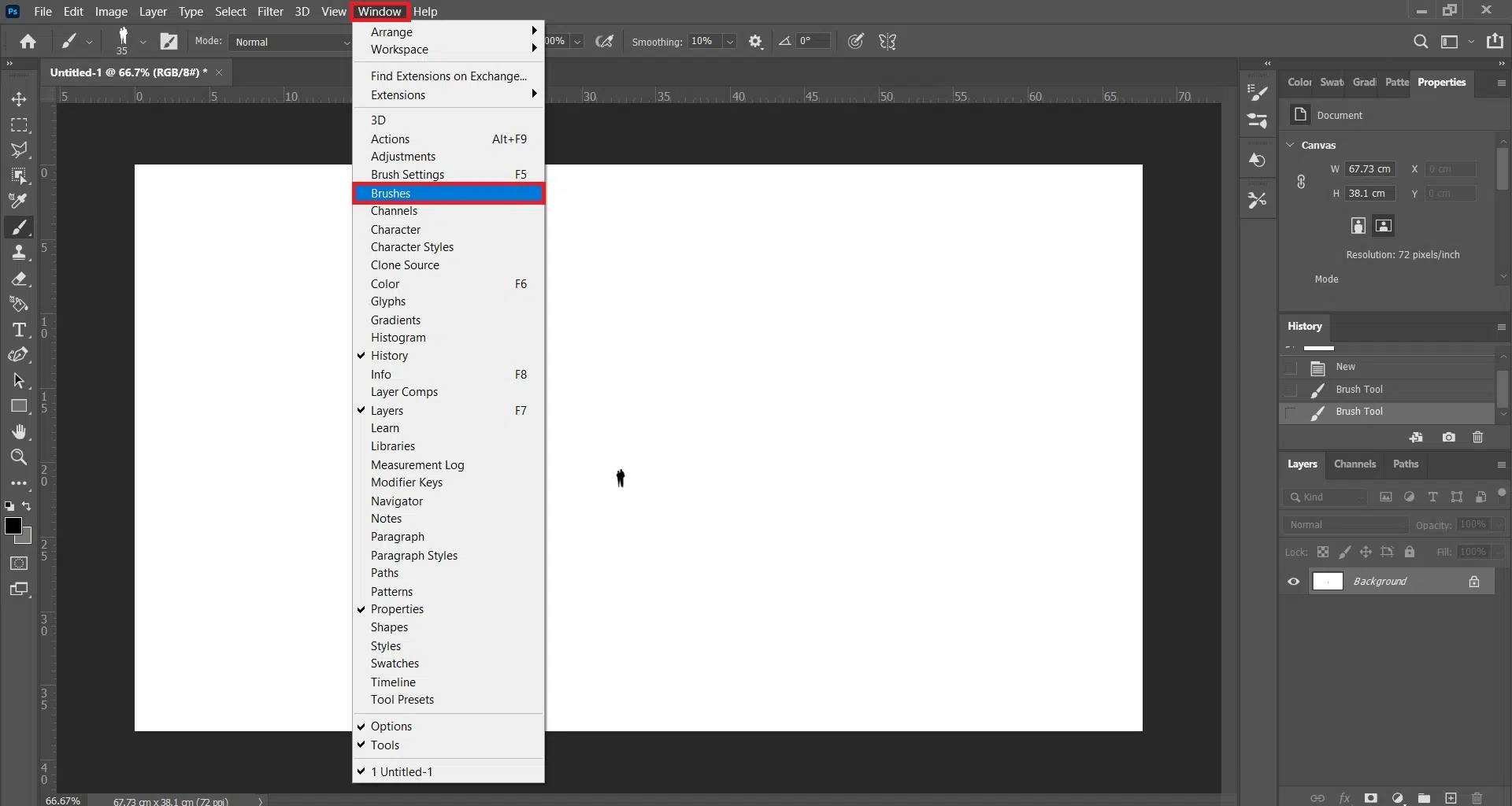 در نوار ابزار بالا در زیر مجموعه window گزینه brush را انتخاب کنید تا پنجره ای برای شما باز شود.
