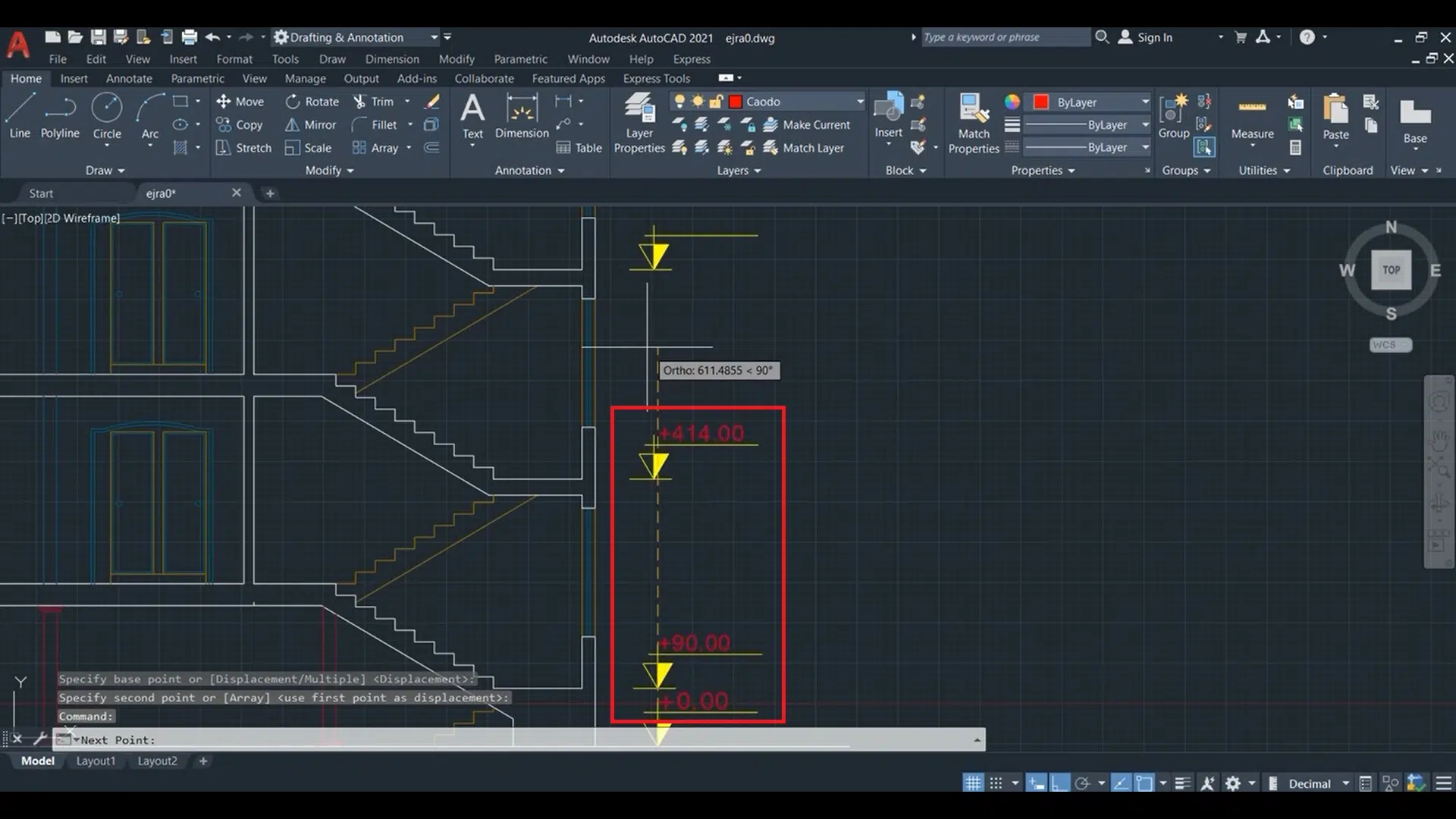 حال با تایپ DCD و اینتر این لیسپ فعال میشود. زمانی که فعال شد یک بار دیگر اینتر را میزنیم و اولین کد ارتفاعی را انتخاب میکنیم.
