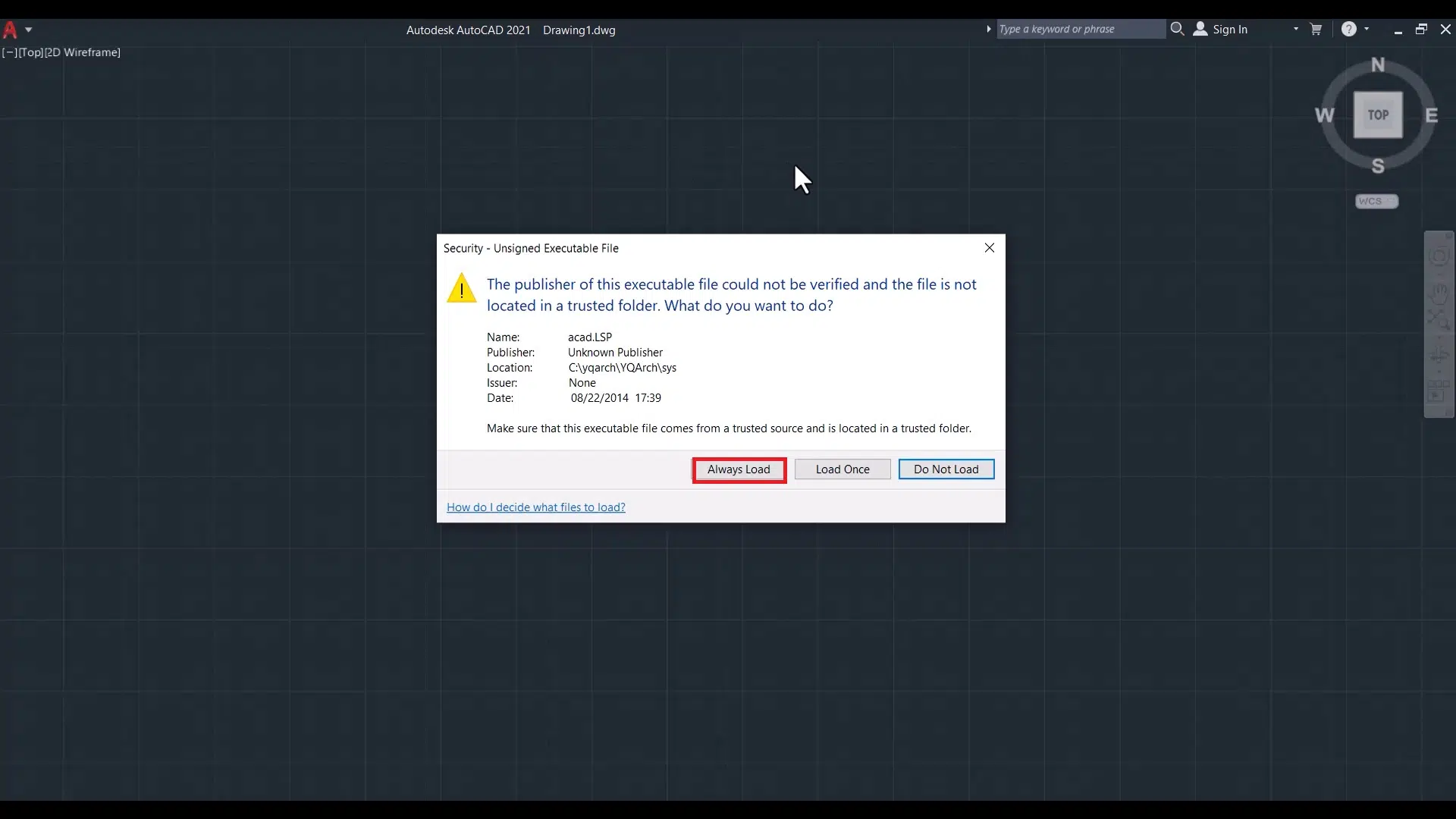 اتوکد را باز کنید. در همان ابتدا پنجره ای باز میشود که در آن گزینه ی always load را انتخاب کنید.