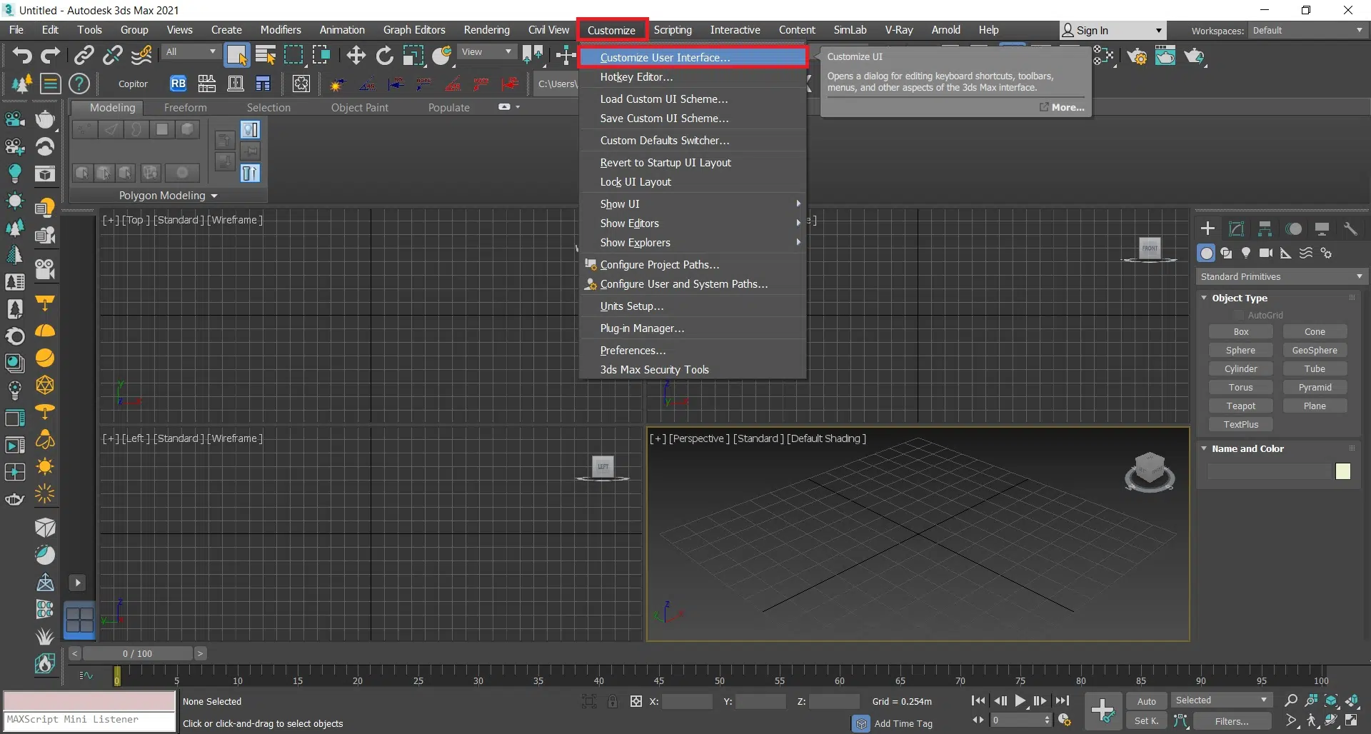 برای رفع این مشکل در نوار ابزار بالا در منوی customize گزینه customize user interface را انتخاب کنید.