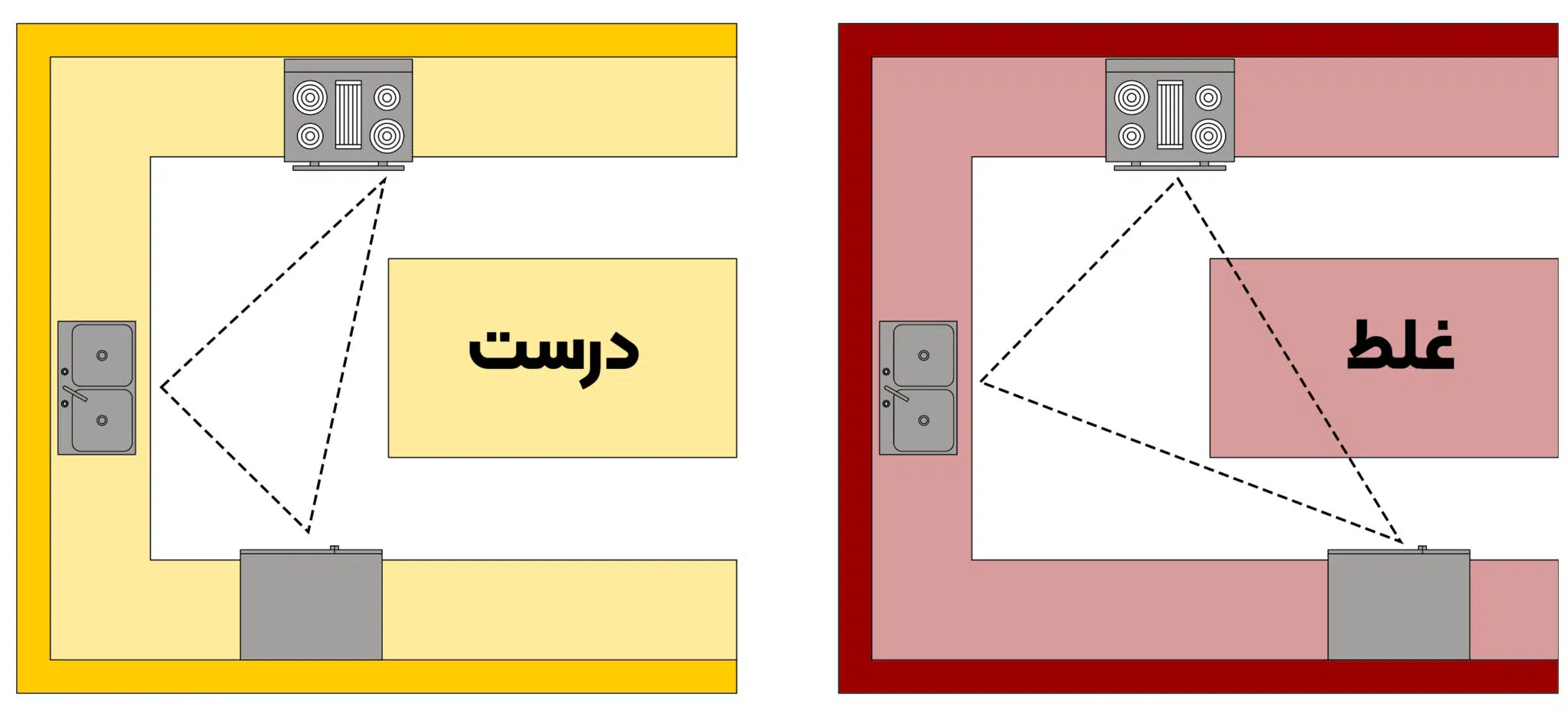 حداقل طول اضلاع مثلث کار آشپزخانه