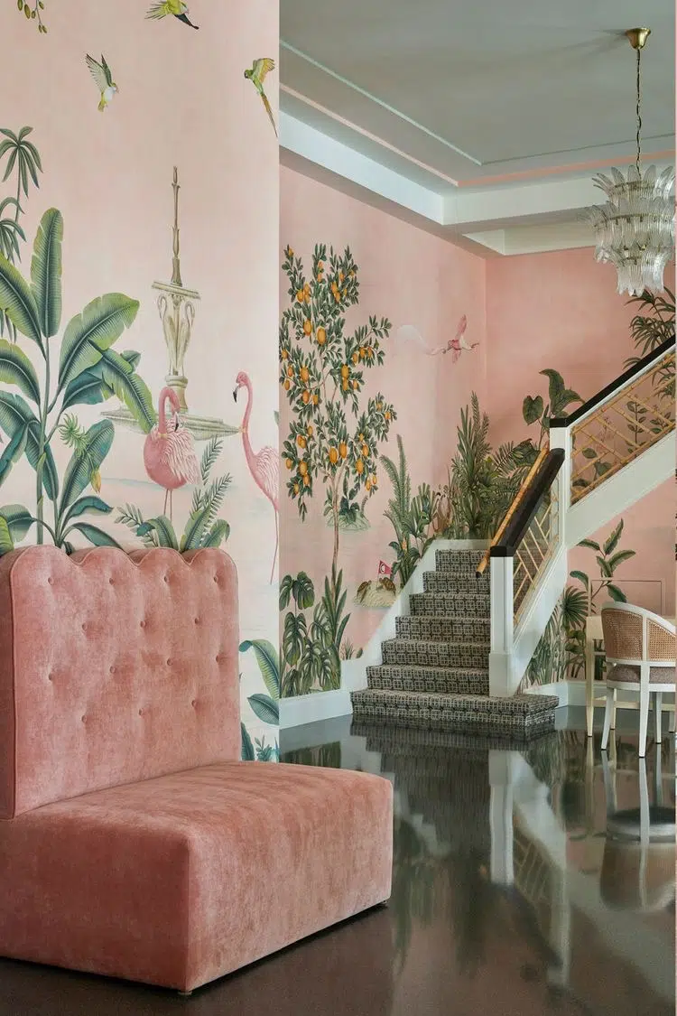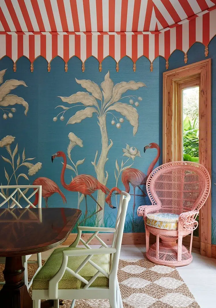 کاغذ دیواری های گلدار و گچبری بیشترین چیزی است که در این سبک به چشم میخورد. همچنین میتوانید پس زمینه ای سفید ایجاد کنید و رنگ های شاد را به کمک عناصر مختلف به فضا اضافه کنید. چوب، بامبو و حصیر هم در این سبک به چشم میخورد.