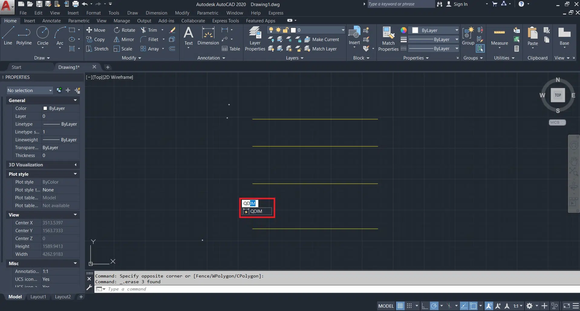 برای فعال کردن این دستور ابتدا در اتوکد عبارت QDIM را تایپ میکنیم و آن را انتخاب میکنیم.