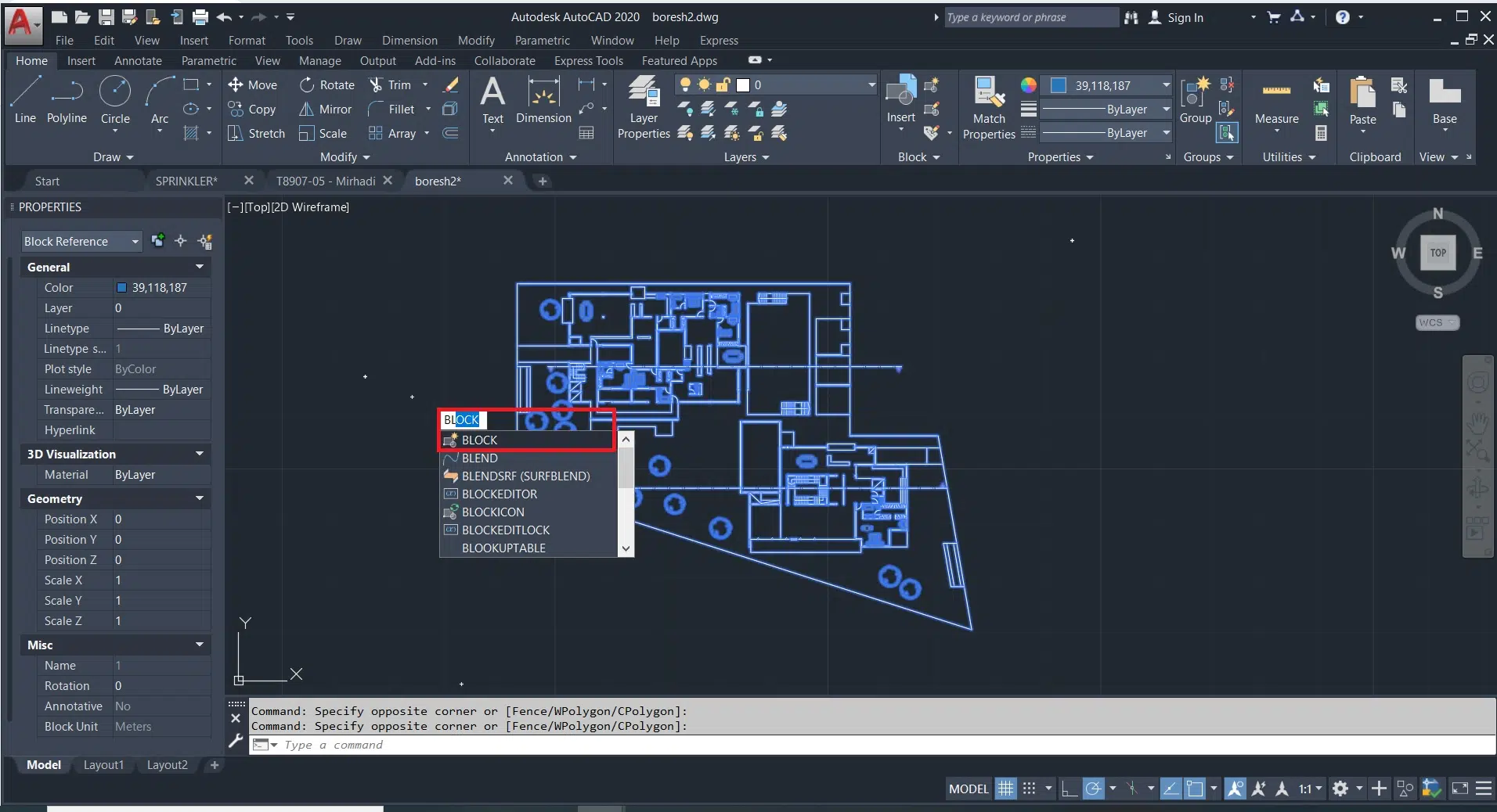 ابتدا برای استفاده از این دستور پلان مورد نظر را انتخاب میکنیم و به کمک دستور block آن را به بلاک تبدیل میکنیم.