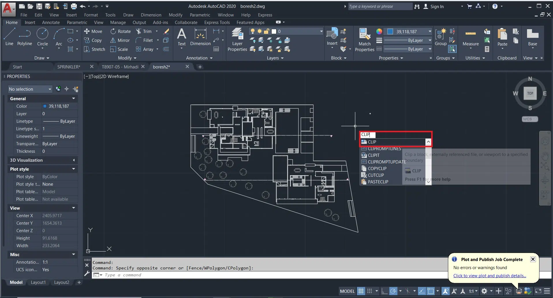 دستور clip را با تایپ cl و زدن اینتر فعال میکنیم و پلان را انتخاب میکنیم.