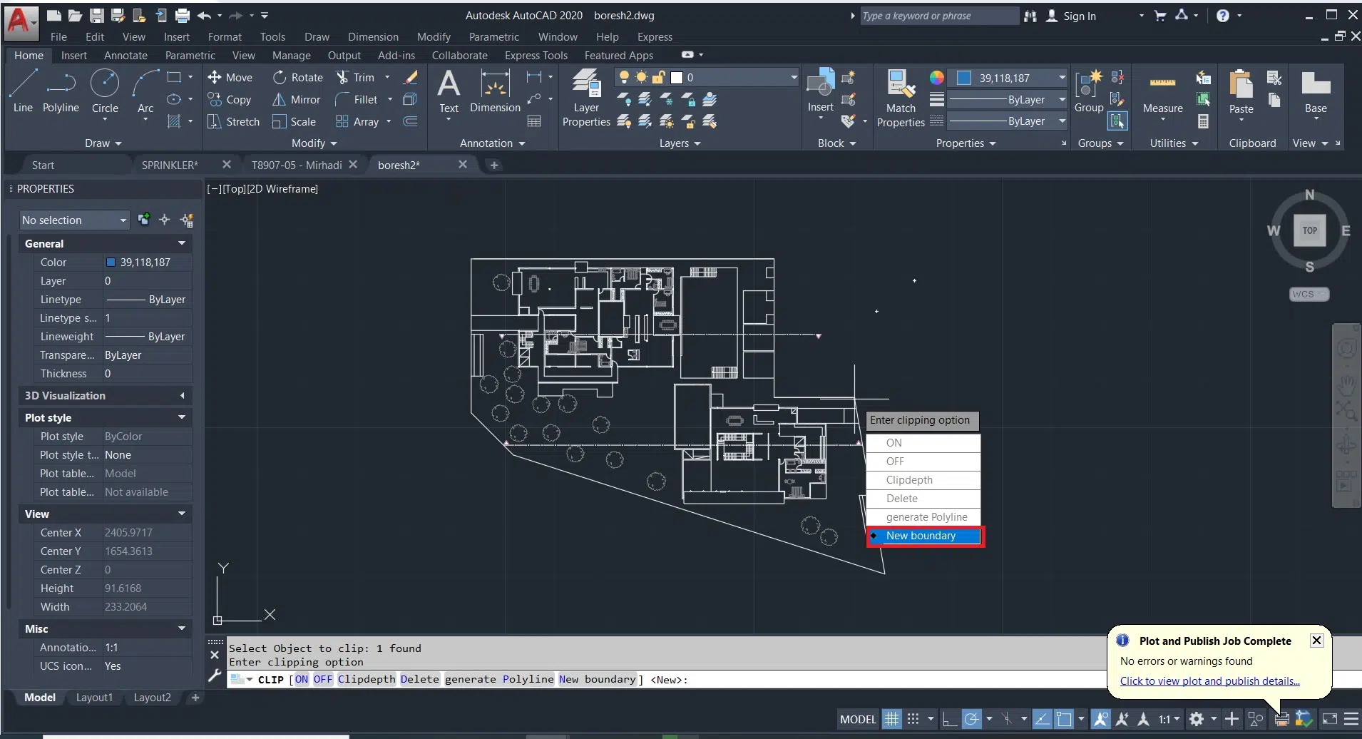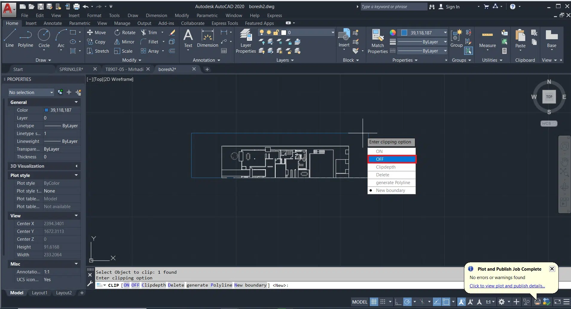 اگر خواستید پلان را به حالت اولیه برگردانید کافی است یک بار دیگر دستور clip را انتخاب کنید و پلان را انتخاب کنید و در پنجره باز شده گزینه off را فعال کنید.