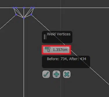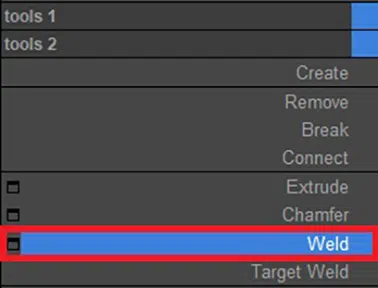 در ادامه مدلینگ پاف، ورتکس های داخلی را انتخاب میکنیم و به کمک weld و افزایش مقدار آن ورتکس ها را به یک ورتکس تبدیل میکنیم.