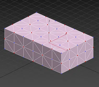 ابتدا یک باکس با ابعاد و تعداد سگمنت های مناسب ترسیم میکنیم و آن را به editable poly تبدیل میکنیم.
