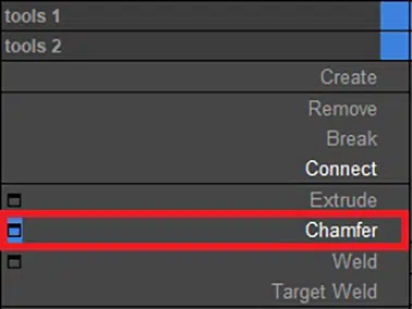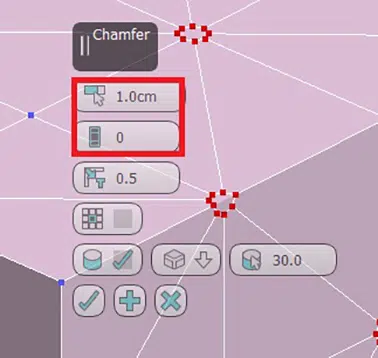 به ورتکس ها chamfer با مقدار مناسب مطابق تصویر زیر اعمال میکنیم.