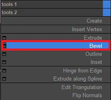 پلیگان های ایجاد شده را انتخاب میکنیم و به آن bevel به سمت داخل اعمال میکنیم.