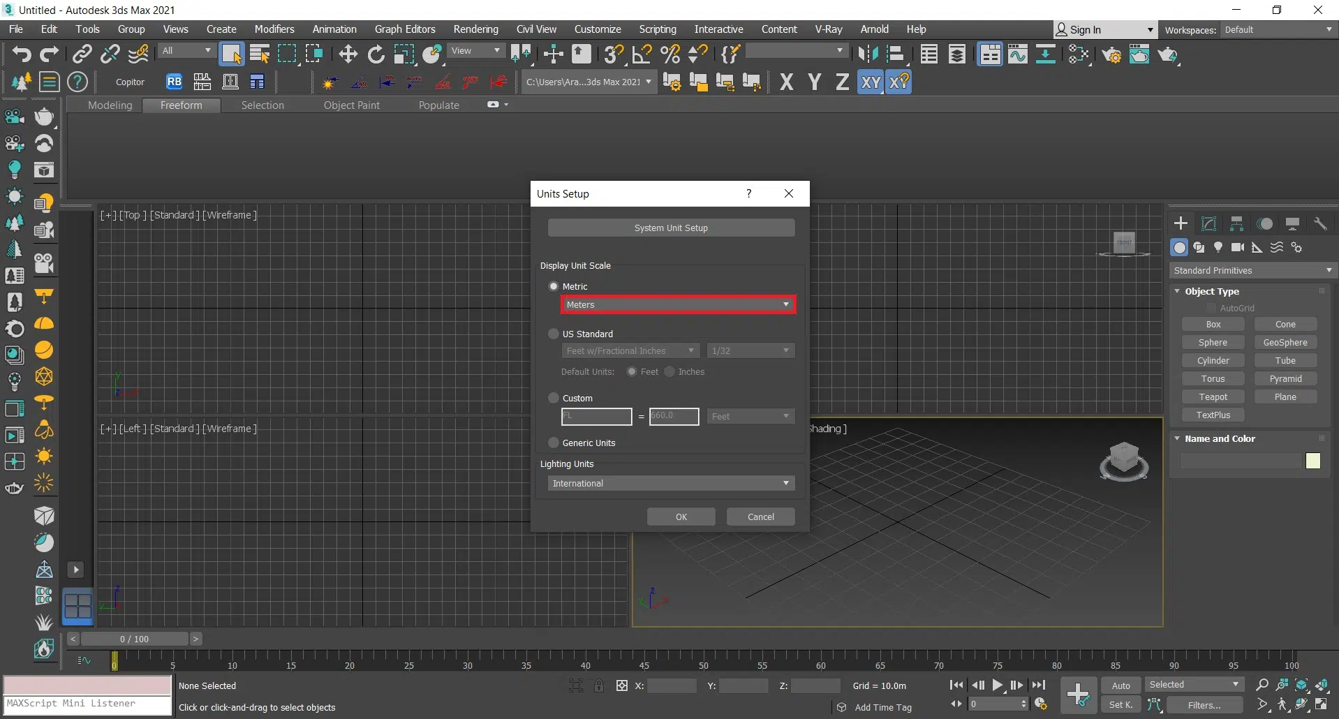 اولین قدم برای شروع ترسیمات و مدلسازی در تری دی مکس تنظیم واحد اندازه گذاری است برای اینکه مدلسازی ما دقیق و طبق استاندارد و با ابعاد واقعی باشد. برای هر موضوع واحد اندازه گذاری میتواند متفاوت باشد که در این مقاله روش تنظیم آن را به واحد دلخواه یاد میگیریم.