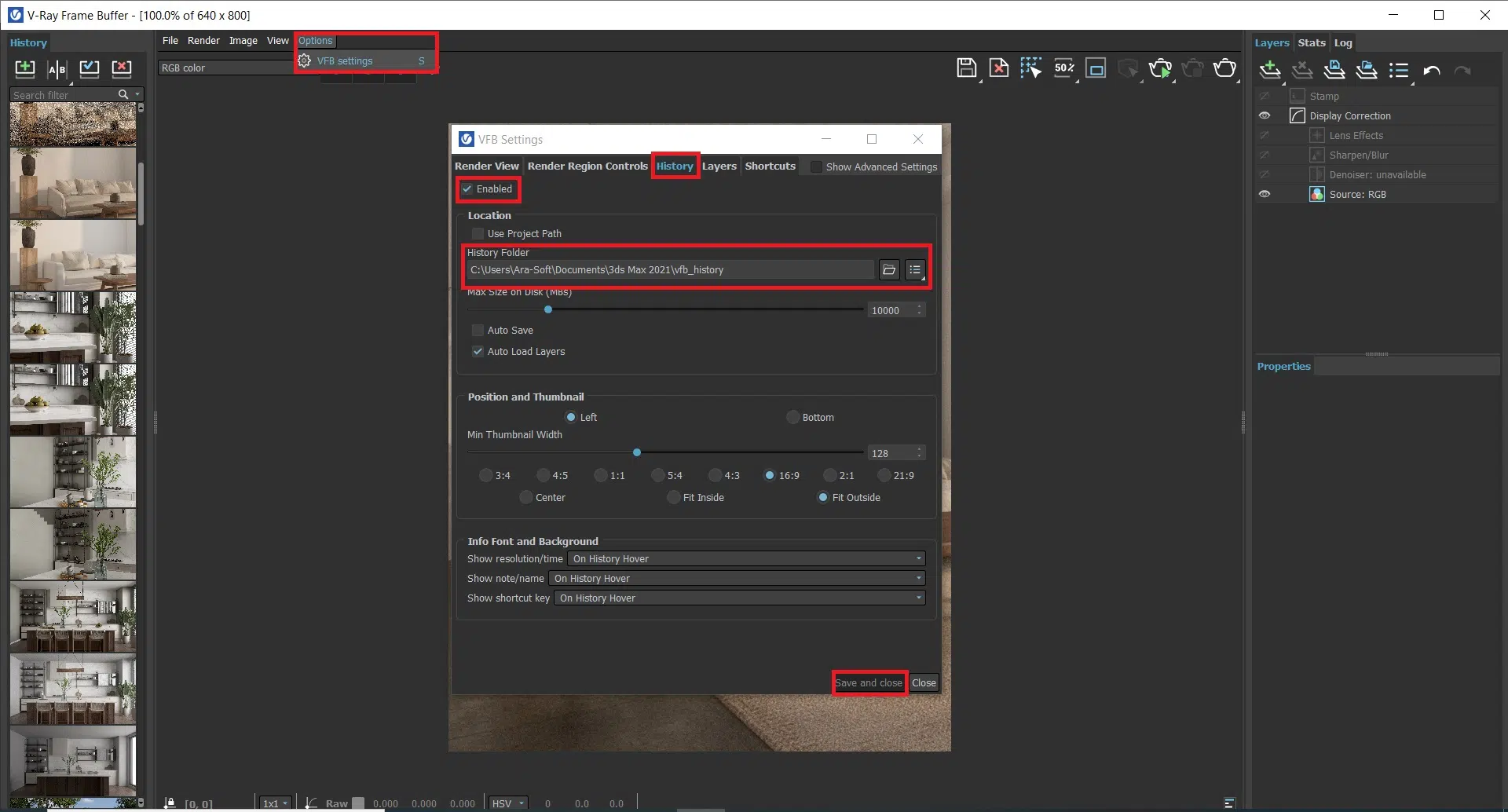 فریم بافر یکی از اصلی ترین قسمت های ویری است که عملیات رندر در آن قابل مشاهده است. همچنین در ورژن های جدید ویری قابلیت های زیادی به آن اضافه شده که شما به کمک آن ها میتوانید رندر های خود را ادیت کنید و تا حدودی عملیات پست پروداکشن را روی آن اعمال کنید. در این مقاله بخش هیستوری فریم بافر را بررسی میکنیم. ابتدا برای دسترسی به فریم بافر میتوانید از نوار ابزار ویری استفاده کنید یا با کلیک راست روی صحنه و انتخاب Vray VFB آن را باز کنید.