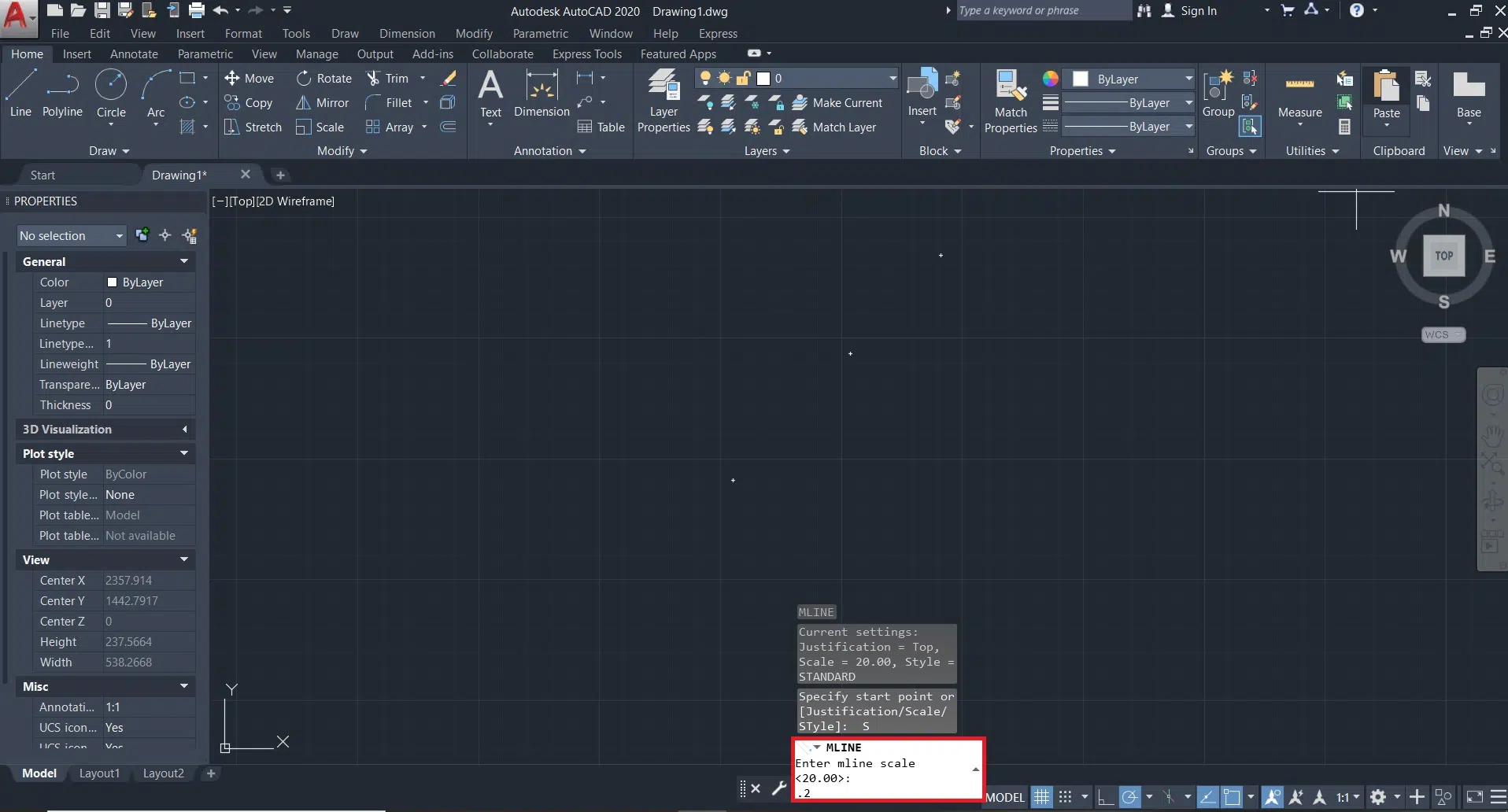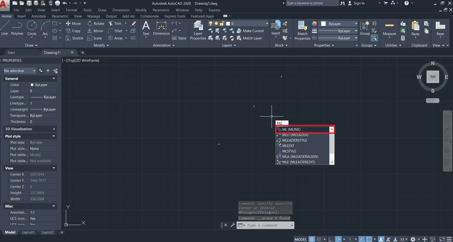 ابتدایی ترین دستور برای ترسیم دیوار و ضخامت آن دستور offset است که بعد هم نیاز به ادیت و trim گوشه ها دارد. اما یه کمک Mline میتوانید این کار را به راحتی انجام دهید. ابتدا دستور ml را تایپ کنید و اینتر را بزنید.